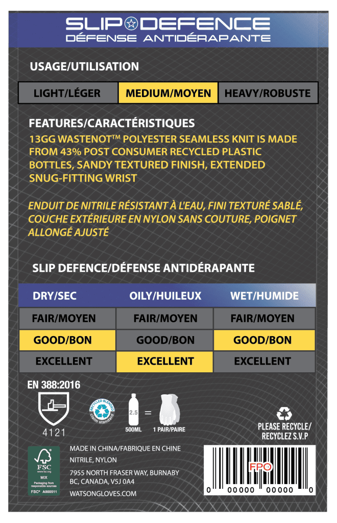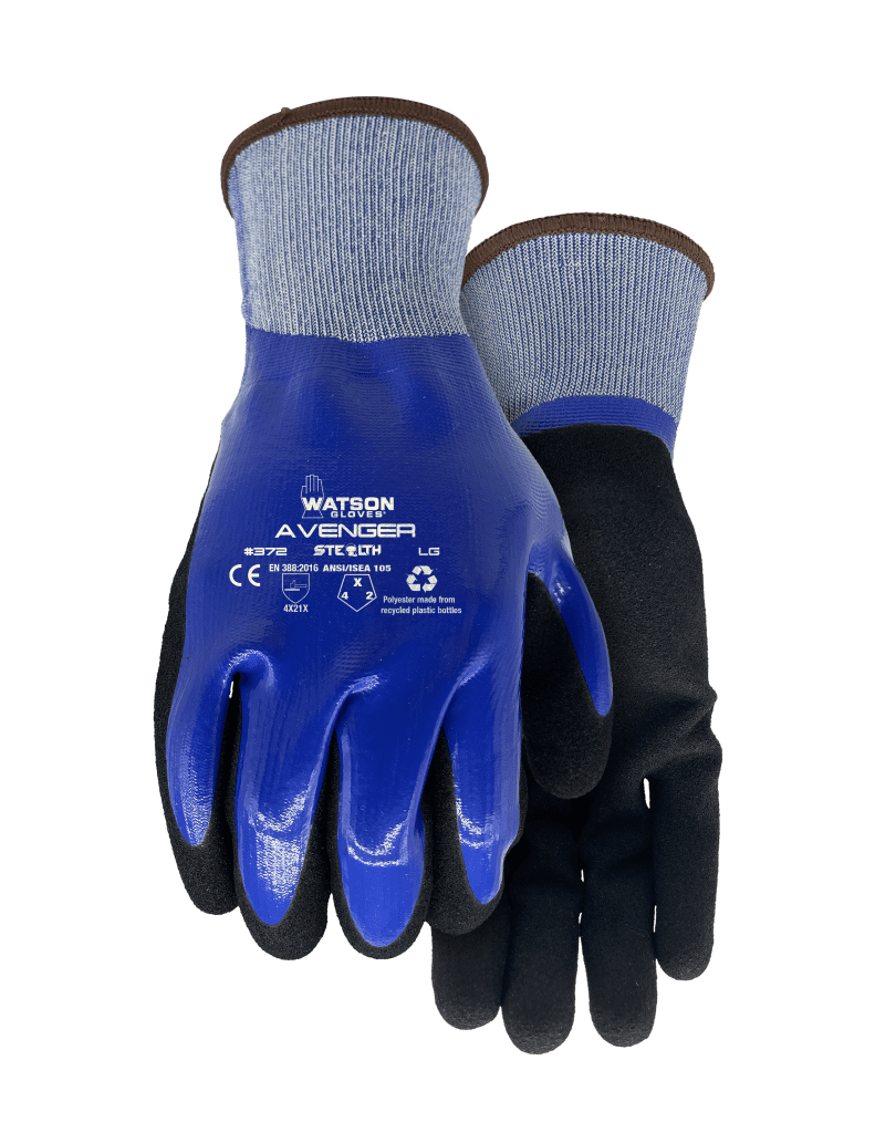 High-performance fully-coated nitrile gloves built for durability, grip, and sustainability. The Stealth Avenger combines Watson’s WasteNot™ recycled liner technology with Reclaim™ biodegradable nitrile, reducing environmental impact without compromising performance.