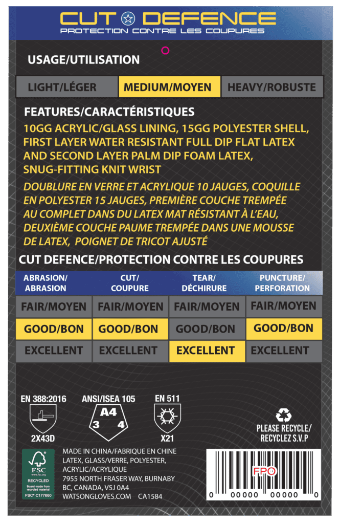 ANSI/ISEA 105: Cut A4 · Abrasion 3 · Puncture 4