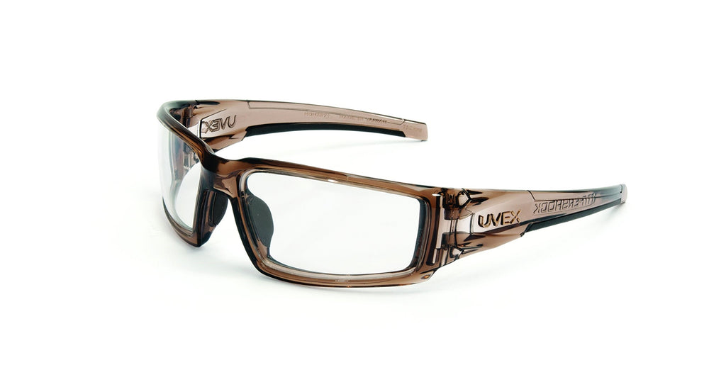 uvex Hypershock™ Safety Glasses – Smoke Brown Frame with Clear HydroShield® Anti-Fog Lens